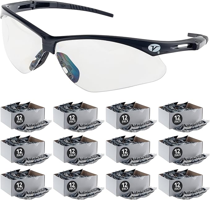 Veratti V1023N Safety Glasses, Clear Anti-Fog Lens, ANSI Z87.1, Removable Strap, Black Frame, Impact Resistant
