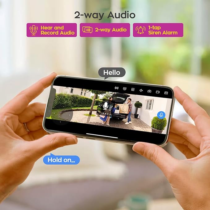 - 【HD Image & 2-way Audio】With high-gain microphone and speaker inside, you can hear and talk while viewing the 2K HD live footages.