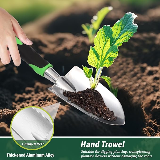 - 【Durable & Sturdy】: Improved with top quality no rusting aluminum, This heavy duty garden kit is crafted for durability, can withstand the toughest roots, rocks, and soil. Their robust construction ensures they remain unfaltering, resistant to bending or breaking during use, while adeptly addressing various gardening tasks with ease.
