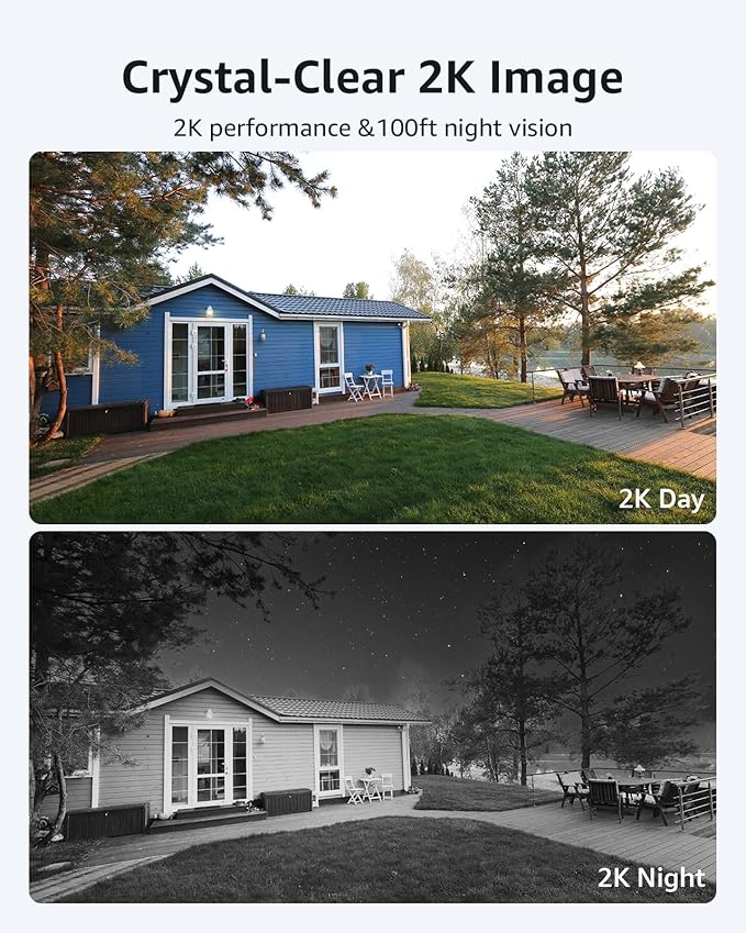 - 【3MP Super HD & 100ft Night Vision】You can see clearly in 3MP full HD for detailed monitor & security. The built-in IR lights allow you to see up to 100ft of night vision at night. And the IP66-rated outdoor camera can be used in any harsh conditions.