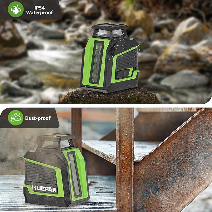 - Precision with Self-Leveling, Manual & Pulse Modes – With ±1/9 inch accuracy at 33 ft, this laser level delivers reliable results for construction, remodeling, and DIY tasks. It covers up to 82 ft in normal mode and extends to 165 ft in pulse mode—ideal for brighter environments. Switch freely between self-leveling, manual, and pulse modes. Note: Pulse mode requires a Huepar laser receiver (not included).