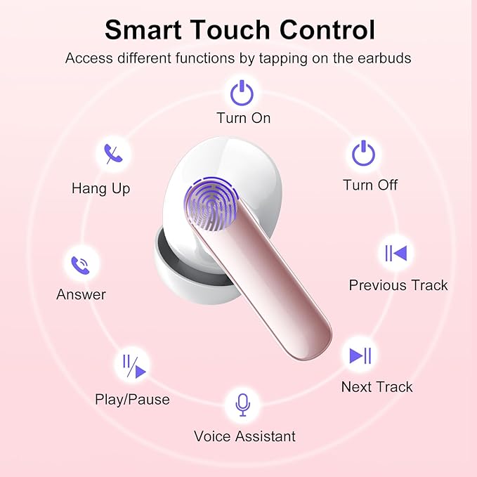- SMART TOUCH & WIDE COMPATIBILITY: The S50 in-ear headphones features a smart touch design that is sensitive and easy to use, allowing you to answer/reject/hang up calls, switch between songs, activate voice assistants, and more with a simple touch of the earbuds; The Bluetooth earbuds is compatible with most Bluetooth-enabled devices, including iOS/Android smartphones, tablets, laptops, TVs and more, so you don't have to worry about compatibility issues