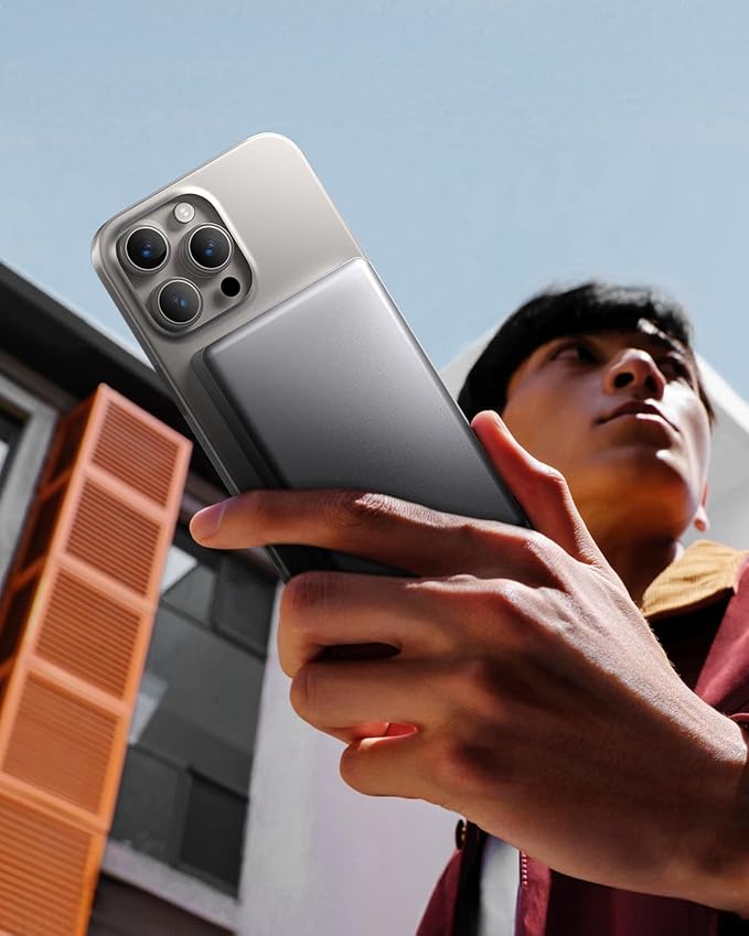 - [ Premium All-Metal Design ] Crafted with a sleek aluminum alloy shell, this slim magsafe power bank combines elegance with durability. The metal construction enhances heat dissipation and adds a premium touch, making it a stylish companion for your iPhone or other devices