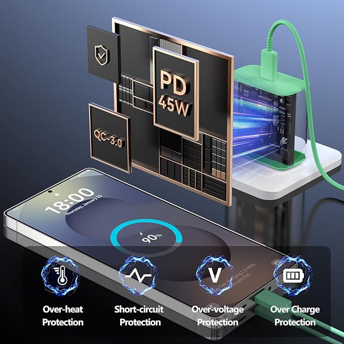 - 【One for All】 45W Super Fast Charging 2.0 max. 45W for Samsung Galaxy S24 Ultra, S24+, S24, S23, S23 Ultra, S23+, S22, S22+, S22 Ultra, Note 10+, Note 10+ 5G, A91 and future compatible devices. Super Fast Charging max. 25W Super Fast Charging 1.0 for Samsung Galaxy S21/S21 Ultra/ S21+ 5G, S20/ S20 Ultra/ S20+/ S20 FE, Note 10/ Note 10 5G, Note 20/ 20 Ultra 5G/ S10 5G, Galaxy Z Fold 3/4/5, Galaxy Z Flip 3/4/5, A90 5G, A80, A70, Book S, Galaxy Tab S7/S7+/S8/S8+/S8 Ultra..