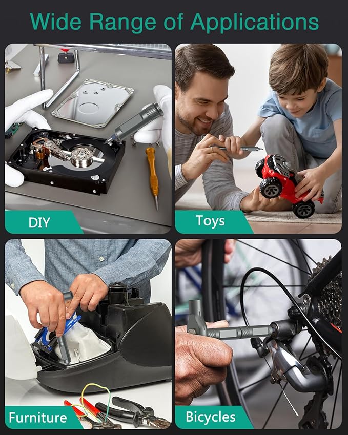 - Wide Range of Applications: Perfect for furniture assembly, electronics, appliances, motorcycles, and bicycle repairs, this ratchet screwdriver set is an indispensable tool for both professionals and DIY enthusiasts.