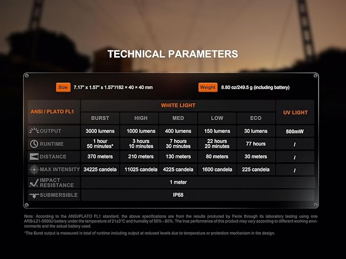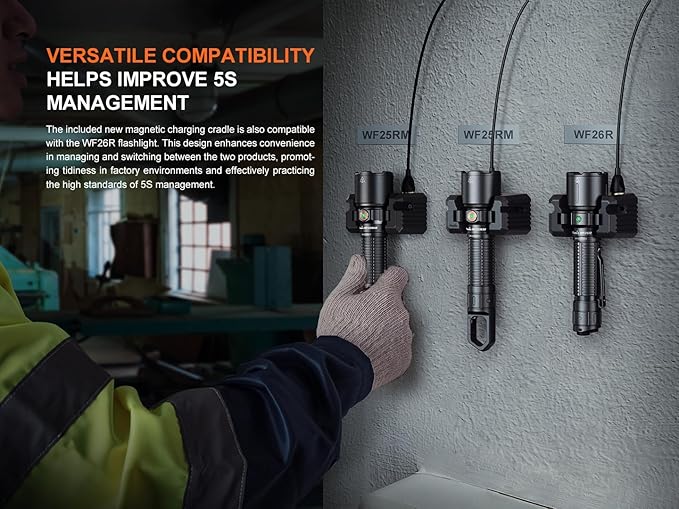 Fenix WF25RM 3000 Lumen Police Duty Flashlight/Blacklight Charging Cradle, USB-C Rechargeable Battery and EdisonBright Charging Cable Carrier