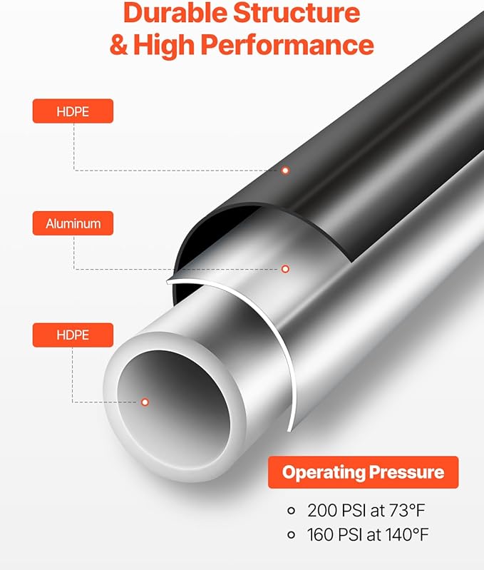 - Three-Layer Durability: Engineered with a durable HDPE-Aluminum-HDPE three-layer structure, our 100FT x 3/4" air compressor line kit provides outstanding corrosion & crack resistance, and the strength to withstand high pressures. It ensures a reliable and efficient airflow, perfect for use in your factory and workshop.
