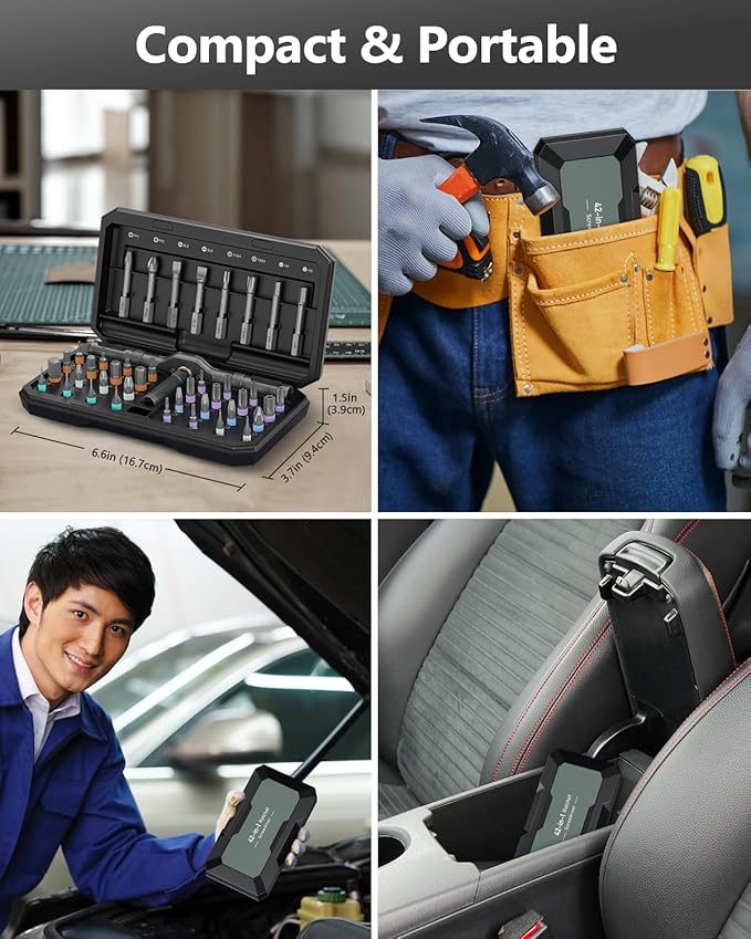 - Easy to Organize & Carry: Comes with a storage case with a sturdy shell and well-organized internal compartments to ensure neat storage and easy carrying. The built-in magnetizing area allows you to add magnetism to the bit at any time