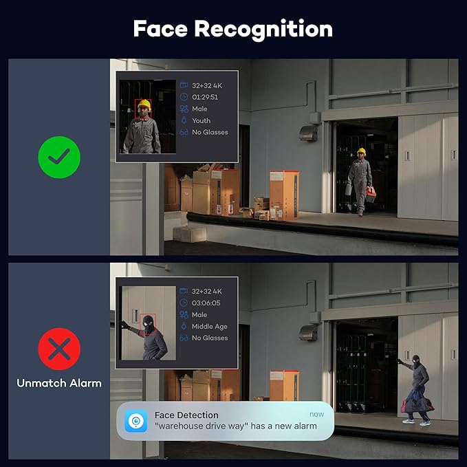 - Smart Color Night Vision-- AI-powered human and vehicle detection activates warm lights to deliver color night vision for clearer, more detailed nighttime footage.