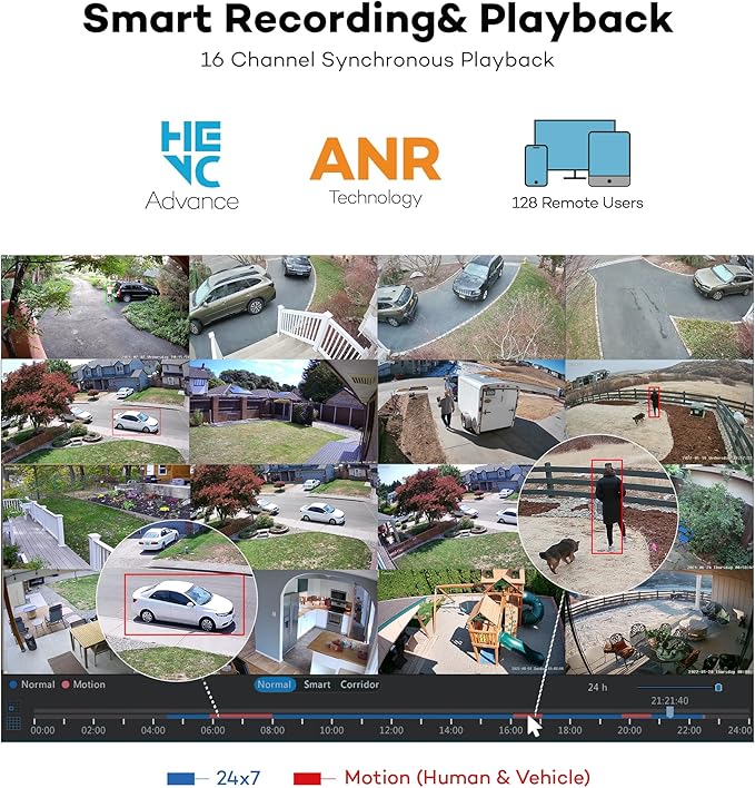 - Smart AI Human & Vehicle Detection-- Minimize false alarms and save storage space by detecting only relevant events, such as human or vehicle motion.