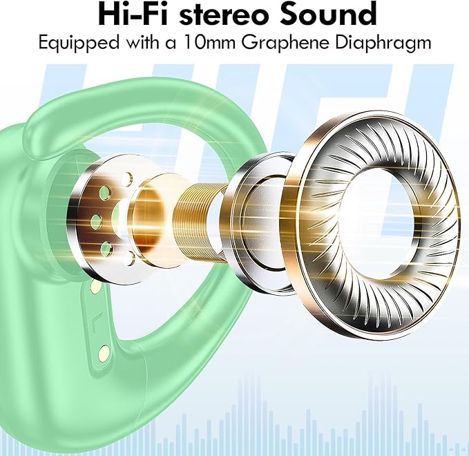 - Exceptional Sound Quality:Equipped with 16.1mm vibrating diaphragm drivers, these Bluetooth earbuds deliver powerful bass, crisp mids, and clear treble for a rich, immersive sound experience. The built-in microphones isolate your voice for crystal-clear call quality, ensuring your conversations are always loud and clear, no matter where you are