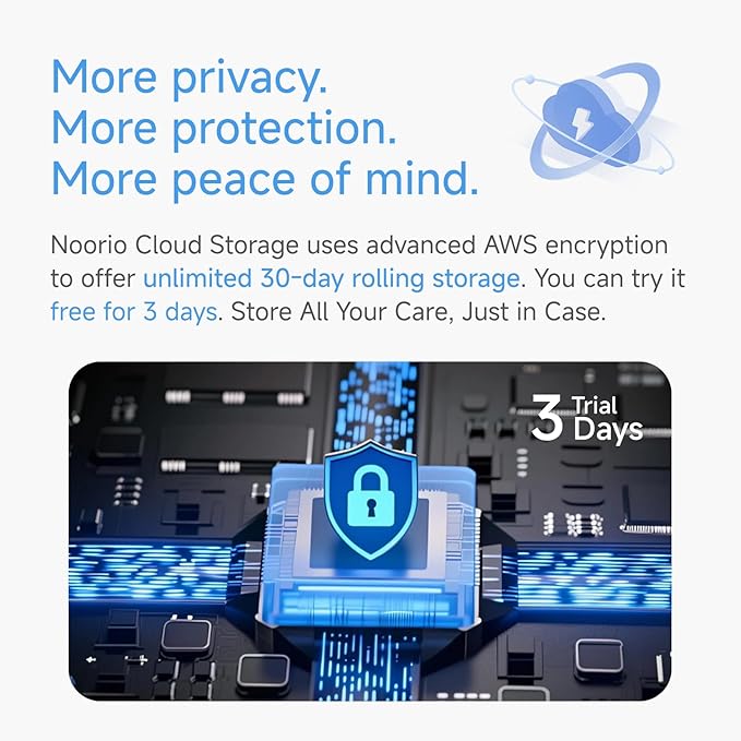 - IP65 Weatherproof & 24/7 Record - Noorio home security camera builts to withstand rain, snow, and extreme temperatures, this outdoor security cameras ensure uninterrupted operation through harsh weather. With 24/7 continuous recording, you’ll never miss critical moments—no matter the season