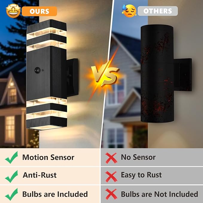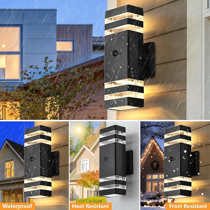 - 2025 Upgraded Motion Sensor Outdoor Lights: Featuring advanced PIR motion and photocell sensors, our outdoor wall lights offer 3 lighting modes for smart, energy-efficient illumination. In addition, this motion sensor porch light features the latest sensor design to easily switch modes with a single click of the button