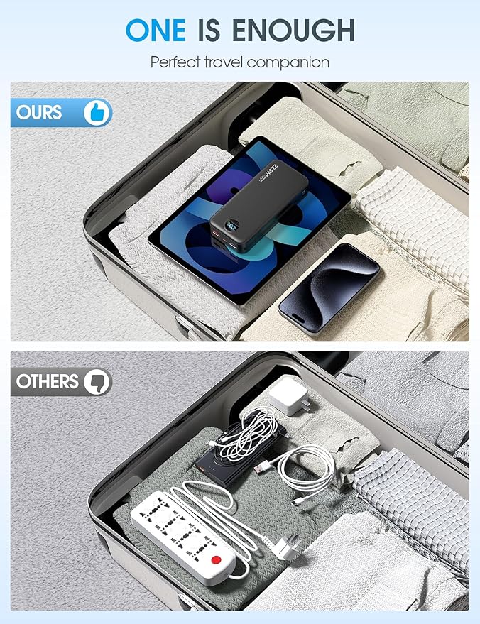 - ใ๐ฉ๐๐๐๐-๐๐ ๐พ๐๐๐ ๐ท๐๐๐ & ๐ช๐๐๐๐๐ ๐๐๐ ๐ผ๐๐๐๐๐๐๐ ๐ท๐๐๐๐๐๐๐๐๐๐ใThe space-saving 90ยฐ foldable AC wall plug make the portable charger eliminates tangled cords with built-in USB-C and iOS cables. Dual USB-A ports and a USB-C port allow you charge 5 devices simultaneously. Travel light, charge freelyโportable charger power bank with no extra cables or adapters needed, just plug and go
