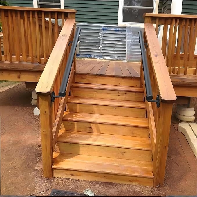 - 【Sleek Comfortable Powder Coating】: Slightly matte black powder coating looks very sleek and the clean surface is very easy to maintenance. The textured surface, feels good to touch and and non-slip to grips, perfect for the safety railing on the slippery ground.