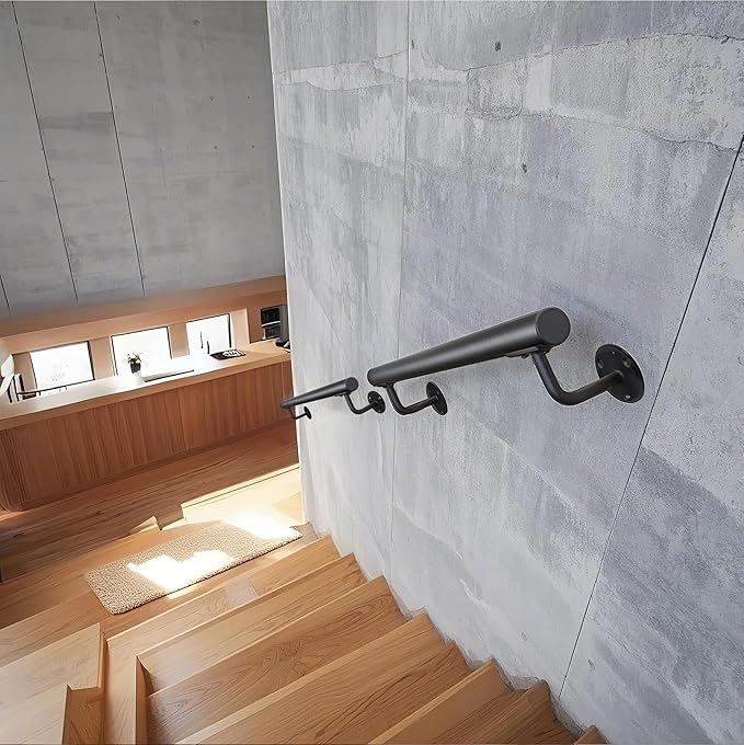 - 【Sturdy and Safety Stair Handrail 】: Solid powerful material, the solid iron brackets holds up to 400 lbs with correct installation, available to screw into wood plate, drywall studs or secured to solid brick or concrete walls for handicap railing.
