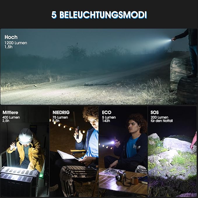 - Special Feature : 1200 Lumens Flashlight, 5 Modes Flash Light, IP68 Waterproof, LED Flashlight, Tactical Flashlight, EDC FlashLight, USB C Rechargeable with Pocket Clip and Lanyard 1200 Lumens Flashlight, 5 Modes Flash Light, IP68 Waterproof, LED Flashlight, Tactical Flashlight, EDC FlashLight, USB C Rechargeable with Pocket… See more