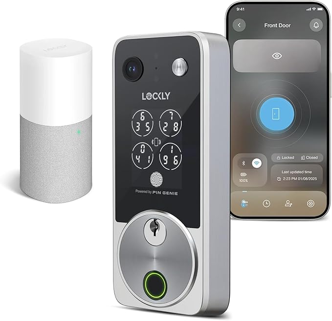 Lockly Vision Zeno Smart Lock with Video Doorbell Camera, Fingerprint Keyless Entry with Apple Home Key, Wi-Fi Deadbolt for Front Door, PIN Genie Keypad, App Remote Control, 2 Rechargeable Batteries