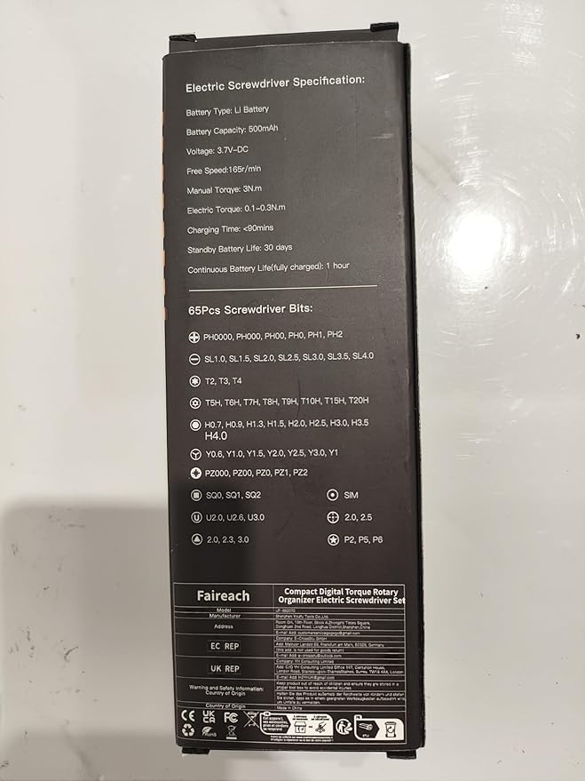 - Engineered for Precision & Power: With 3 gear torque adjustment (0.15/0.25/0.35 N.m) and a 180RPM high-speed motor, the Faireach electric screwdriver cordless makes precision repairs effortless. For heavy-duty tasks, Manual Mode delivers 3N.m of torque. The OLED smart display keeps you informed with battery status, torque setting, and real-time performance metrics—ensuring accuracy and control for any project.