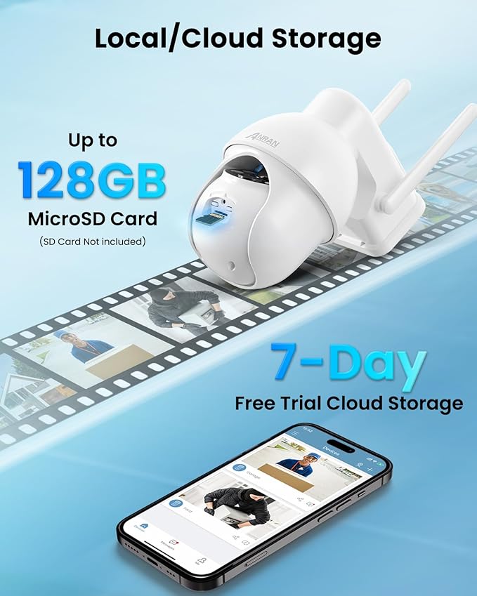 - [Local/Cloud Storage and Works with Alexa] ANRAN wireless outdoor security camera supports both local storage via an SD card (UP TO 128GB, NOT INCLUDED) and optional cloud storage with encrypted data and privacy protection. It also integrates seamlessly with Alexa for added convenience.