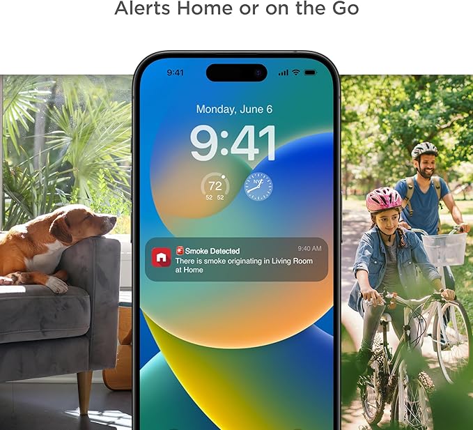 - Voice alerts with Heads-Up warning tells you the type and location of danger in your home