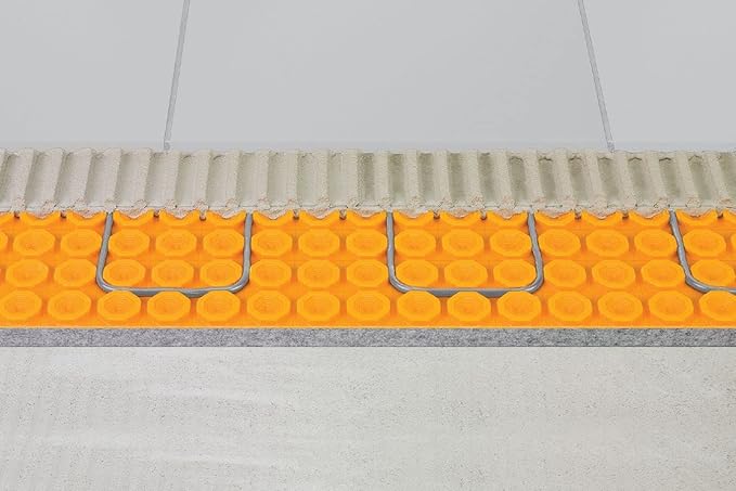 - Thermal break directs heat up into the tile rather than down into the subfloor, reducing energy waste and resulting in up to 70% faster floor heating when applied over concrete substrates