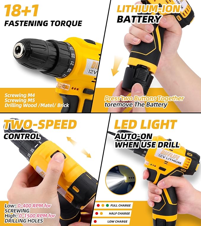 - Powerful Motor: This 12V drill driver tool kit features a robust motor for effortless drilling and driving into various materials.