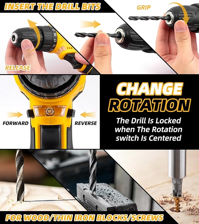 12V Drill Driver Power Tool Combo Kits with Cordless Drill, Professional Household Home Tool Kit Set, DIY Hand Tool Kits for Garden Office House Repair Yellow