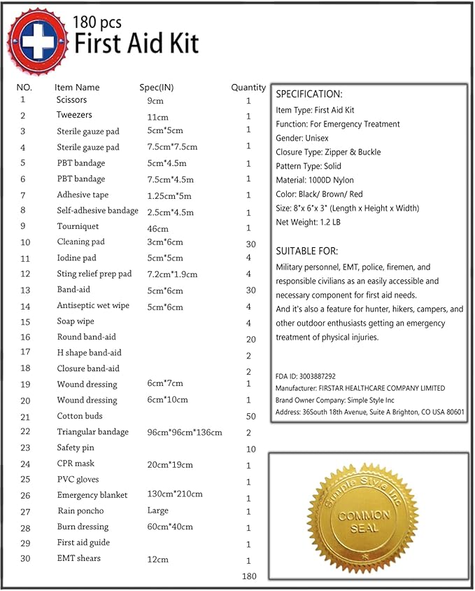 - INCLUDED: 180 piece essential medical supplies for backcountry expeditions. Be Desmond Thomas Doss saving your family and friends in an emergency