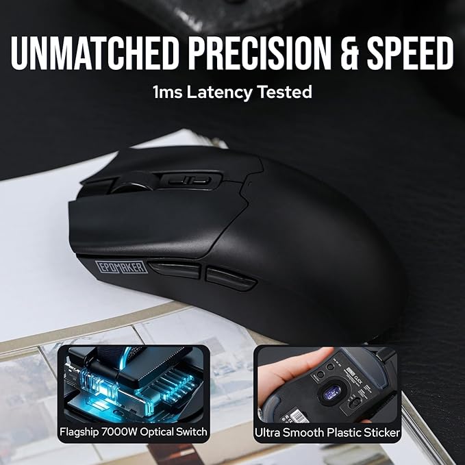 EPOMAKER Click Gaming Mouse Wireless 2.4Ghz/Bluetooth/Type-C, 800 to 42,000 DPI Adjustable, 8K Polling Rate, 500mAh, Lightweight Optical Mouse, for PC/Mac/Linux (Black)