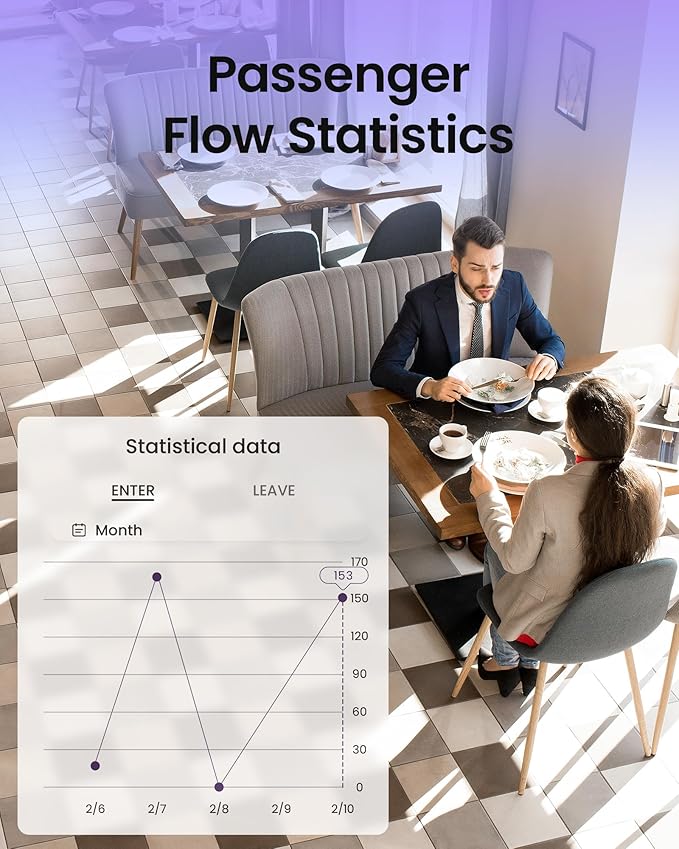 - 355° Pan & 140° Tilt, Auto Tracking: This complete wired camera pans up to 355° horizontally and tilts up to 140° vertically for broader security coverage. Its smart motion tracking automatically locks onto and follows moving objects, ensuring you won't miss any important moments. It also includes real-time people counting for security, operational insights, and optimizing space usage in stores and warehouses.