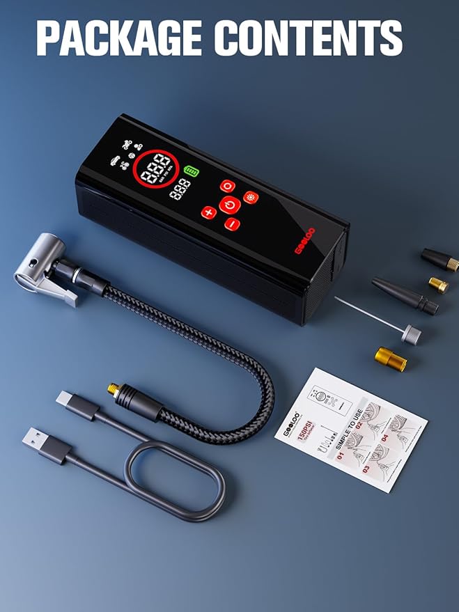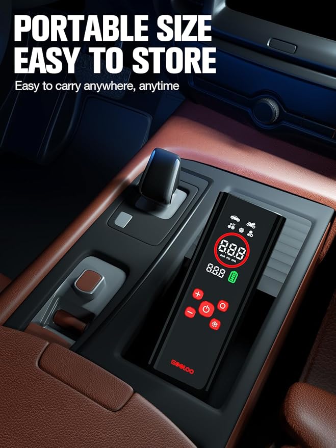 - All-Around Defense & Smart Auto Shut-Off: The GOOLOO AP150 PRO car tire inflator features a high-efficiency battery management system (BMS) and an anti-overheating design, crafted from premium materials, and operates flawlessly in temperatures ranging from -4°F to 140°F. With its intelligent auto shut-off system, this air pump is user-friendly for both beginners and experienced users, making it suitable for everyone. It's an excellent choice for travel as a portable tire inflator and also makes a great gift.