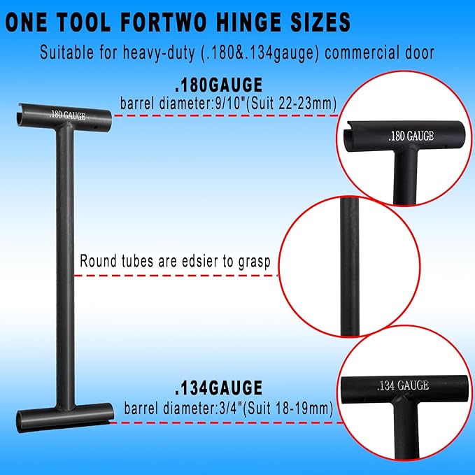 - 【Your Good Helper】This double-ended hinge gap adjusting wrench is designed for heavy-duty .134 (standard doors) and .180 (commercial doors) hinges. It combines both gauges in one tool, providing the best solution for repairing and adjusting commercial door hinges with precision.
