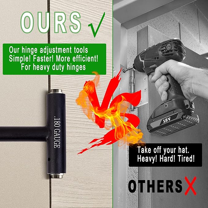- 【Cost-Effective】This door hinge tool offers a cost-effective, quick, and easy solution for common door issues like sagging, sticking, or misalignment. Simply slide the hinge adjuster over the hinge knuckle and rotate the wrench clockwise or counterclockwise to adjust the hinge gap as needed. In seconds, you can fix the door, saving both time and money,eliminating the need for costly replacements or repairs.