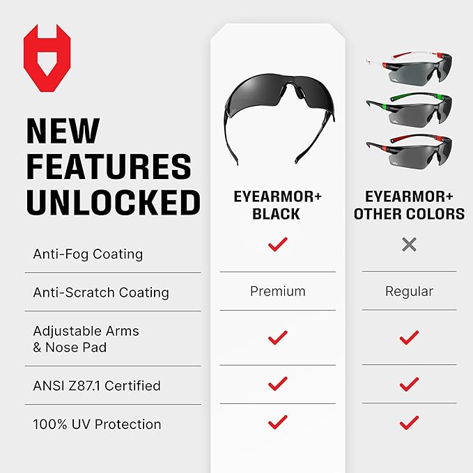 - SAY GOODBYE TO FOGGY LENSES — Discover crystal-clear vision with these work safety glasses tinted. They're 5X more fog-resistant and 2X more scratch-resistant than your average pair of z87 safety glasses, so you can work with confidence without discomfort or distractions.