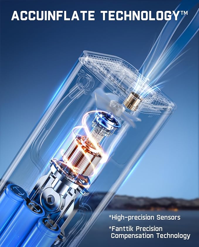 - Accuinflate Technology: Our system, equipped with high-precision sensors and Fanttik Precision Compensation Technology, ensures strict control of inflation accuracy