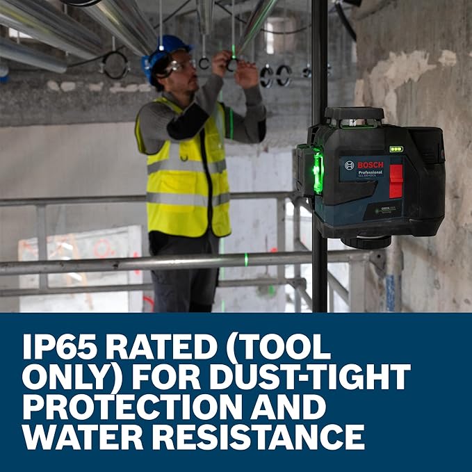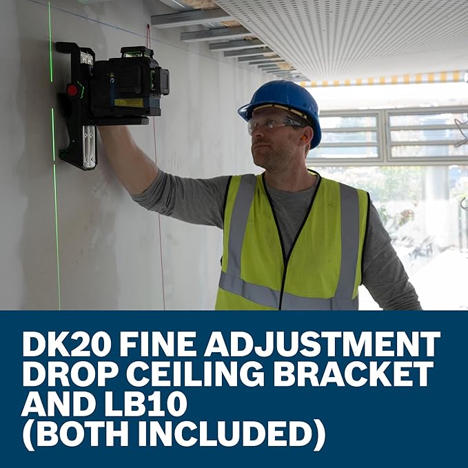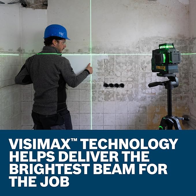 - 360° GREEN-BEAM LASER TECHNOLOGY: Projects three bright green laser lines (one horizontal and two vertical) for enhanced visibility and precise alignment in any job setting.
