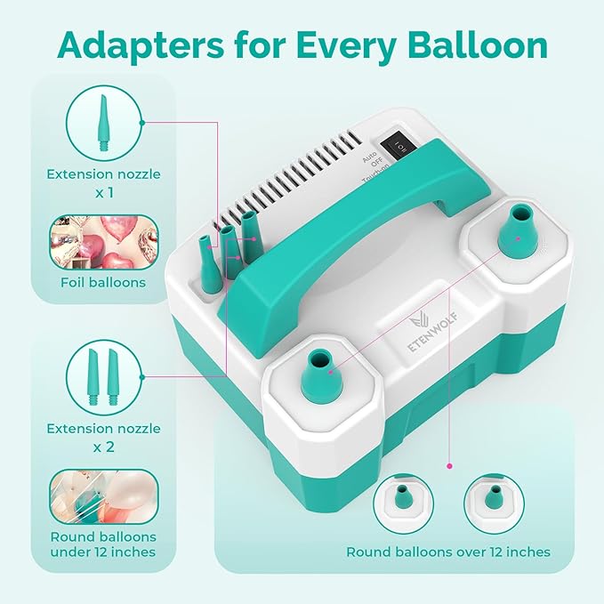 ETENWOLF P400 Balloon Pump Electric for Balloons with 2 Nozzles 110V 550W Balloon Blower for Party Metalic Latex Foil Balloons, Balloon Inflator for Birthday Decorations