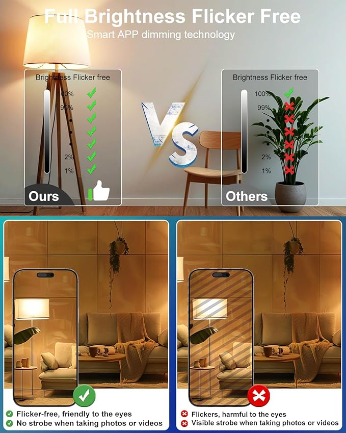 - 【Eye Protection No Strobe Technology】Advanced no strobe technology, dimming range of 1-100%, to ensure that long time use does not hurt your eyes, especially suitable for photography enthusiasts shooting in low-light environments.