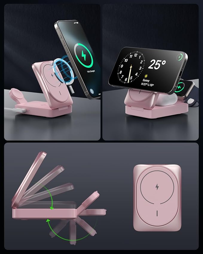 - 【Foldable Design, Magnetic Charger Stand】 The Foldable Magnetic 3-in-1 Wireless Charger features a simple and convenient design, Charge multiple devices at once, including your iPhone, AirPods, and Apple Watch, All while enjoying the versatility of the built-in adjustable stand. This feature reduces cable clutter and simplifies your charging routine. This charger is exceptionally well-suited for travel. (Note: For optimal charging, use the provided 30W USB-C PD wall charger.)