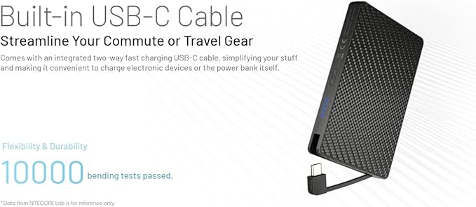 - BUILT-IN USB-C CABLE - Say goodbye to extra wires! An integrated USB-C cable for ultimate convenience, ensuring you’re always ready to charge.