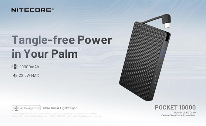 - 10,000mAh POWER BANK - The Nitecore Pocket 10000 provides reliable charging for your devices, keeping them powered during extended trips or everyday use.