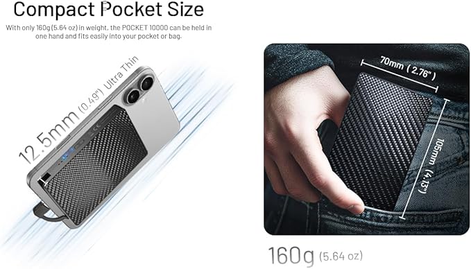 - LIGHTWEIGHT DESIGN - Weighing just 5.64 oz, the Pocket 10000 is slim and designed for portability, making it an easy addition to your backpack, pocket, or travel kit.