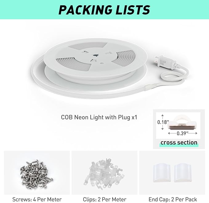- Pure Silicone & Self-Adhesive--GZBtech COB neon strip lights uses high-quality food grade pure silicone tube, more soft and will not turn yellow over time. In addition to equipped with mounting clips,this light strip also comes with strong adhesive backing for effortless, tool-free installation. Simply peel and stick to any clean, smooth surface for instant lighting solutions.