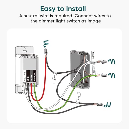- Warm Tips Before Use: The dimmer light switch requires a neutral wire and fits standard wall plates. No hub required. Works with single-pole setups (not 3-way), 2.4GHz WiFi (not 5GHz). Works with non-smart, dimmable LEDs/CFLs (150W max), Halogens/Incandescents (400W max). Faceplate dimensions: 5.07” (L) x 3.34” (W). Internal switch box dimensions: 2.75” (L) x 1.69” (W) x 1.61” (D)