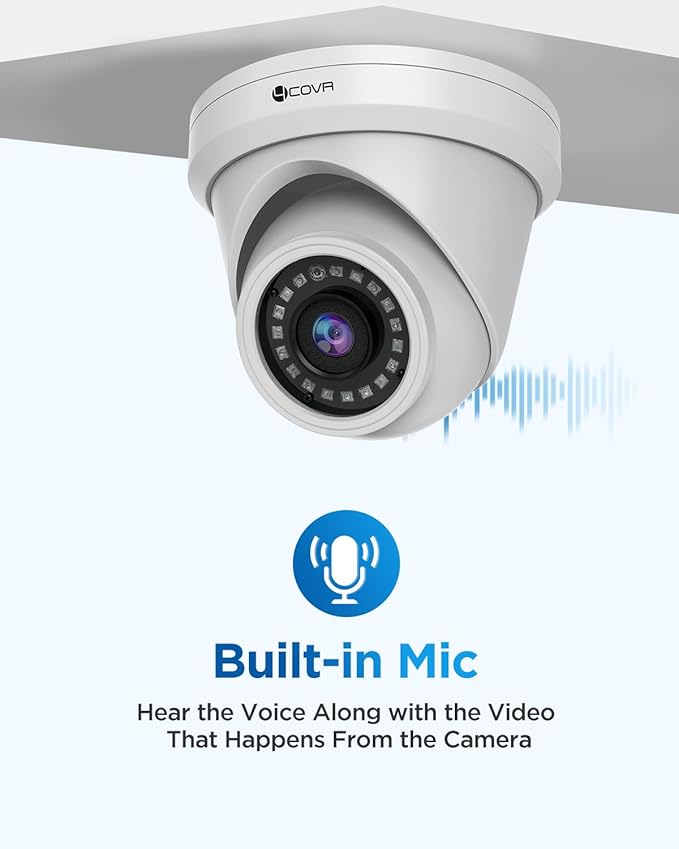 4COVR NVR Security Camera System, 8MP H.265 NVR with 2TB HDD, 4X 5MP PoE Dome IP Cameras with Audio, AI Person/Vehicle Detection, Night Vision, IP67 Weatherproof for Outdoor/Home, LY97AX5M0804-1