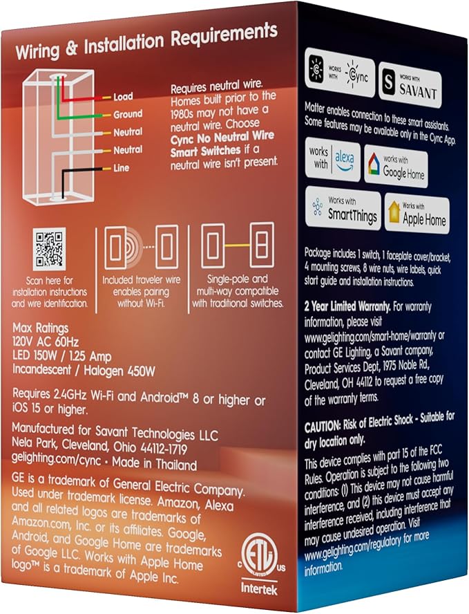 - Easy, DIY Installation: This smart light switch is easy to install and one Cync Smart Switch makes an entire lighting circuit smart; Works for newer homes built after the 1980s and requires a neutral and ground wire and 2.4GHz WiFi to enable smart control