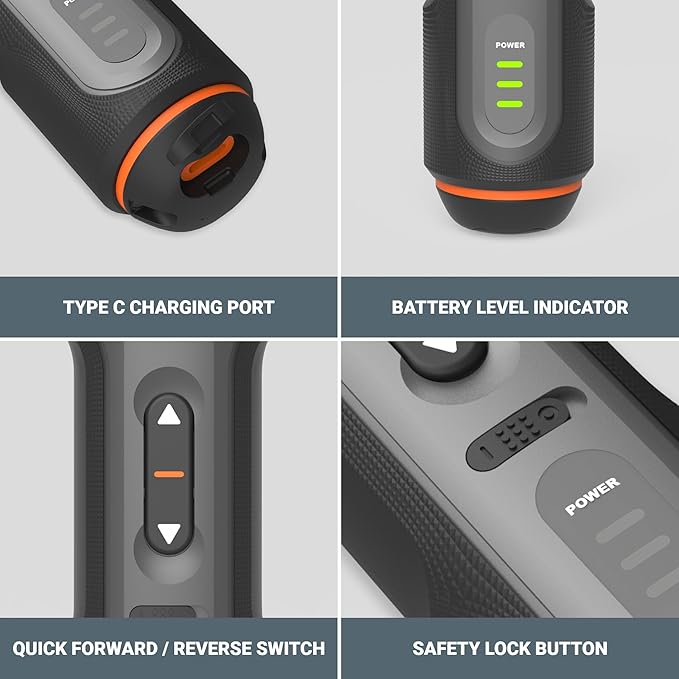 - [Safe, simple, and smart] Safety switch prevents accidental activation, and a battery indicator alerts you when the battery is low for a hassle-free experience.