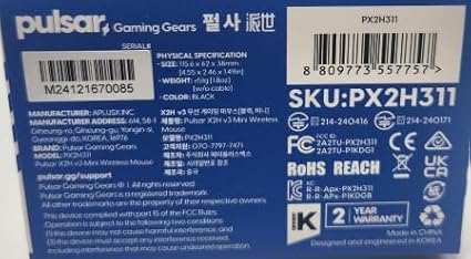 Pulsar Gaming Gears X2H v3 Wireless Gaming Mouse, Ultra Lightweight 1.87 oz (53g), Symmetrical, Optical Switch, 32000 DPI, 750 IPS, XS-1 Sensor, 8k Compatible (Mini, Black)