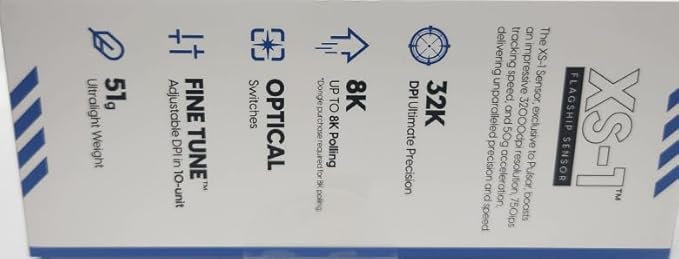 - XS-1 Flagship Sensor - The XS-1 Sensor, exclusive to Pulsar, boasts an impressive 32,000 DPI resolution, 750 IPS tracking speed, and 50g acceleration, delivering unparalleled precision and speed.